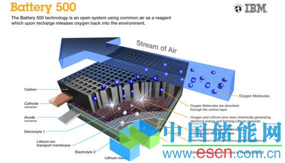 這就是IBM正在研發(fā)的一項(xiàng)很有前景的技術(shù):鋰空氣電池。鋰空氣電池是通過鋰與空氣中的氧發(fā)生化學(xué)反應(yīng)產(chǎn)生電力。它的原理是在行駛過程中將空氣中的氧分子與電池中的鋰離子及電子進(jìn)行反應(yīng),從而產(chǎn)生電能。每次充電的時(shí)候,氧氣就會(huì)被排出電池之外。
