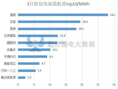 3月軟包電池裝機量