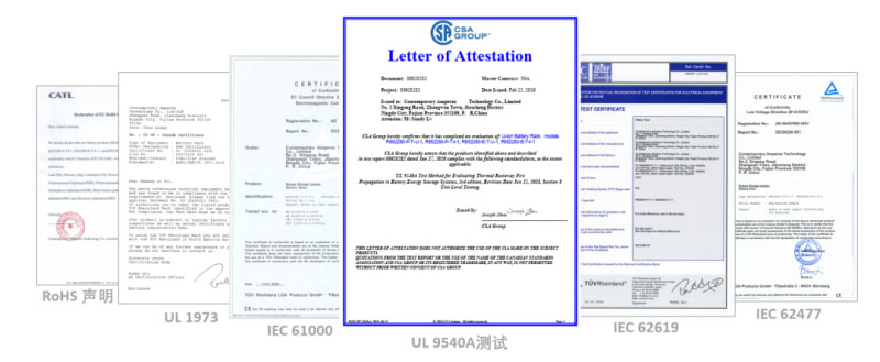 除了UL 9540A,寧德時(shí)代還通過了GB/T 36276,IEC 62619,62477-1 LVD,61000-6-2/-4 EMC和UL 1973等一系列國內(nèi)外權(quán)威認(rèn)證。我們積極參與國內(nèi)外高標(biāo)準(zhǔn)權(quán)威測試,在驗(yàn)證儲(chǔ)能產(chǎn)品安全的同時(shí),保障儲(chǔ)能項(xiàng)目順利落地與安全運(yùn)行,促進(jìn)儲(chǔ)能行業(yè)健康發(fā)展。