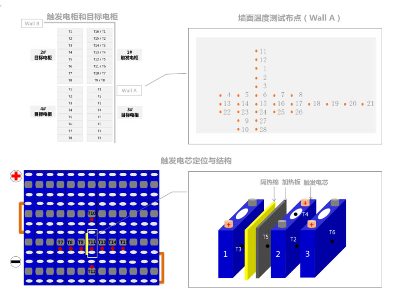 以電柜層級測試為例,寧德時(shí)代風(fēng)冷和水冷產(chǎn)品均表現(xiàn)良好:在無消防系統(tǒng)的條件下,測試過程中電柜只會(huì)冒煙,并無火焰、飛濺物或氣體爆炸;電芯間也無熱擴(kuò)散,其他電箱未受影響,觸發(fā)電柜、目標(biāo)電柜與墻面均無損害;目標(biāo)電柜表面最高溫、墻面溫度及相對溫升符合NFPA 220與NFPA 855要求。