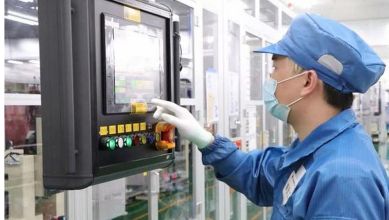 LG化學(xué)濱江工廠增設(shè)生產(chǎn)線,開動(dòng)機(jī)器全力生產(chǎn),圖為員工正在操作設(shè)備。