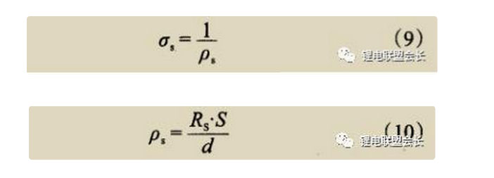 式(9)~(10)中 ,ρs是隔膜的電阻率,為隔膜的有效面積(即電極片的面積),d為隔膜的平均厚度。因此隔膜的電導(dǎo)率(σs)如式(11)所示 。