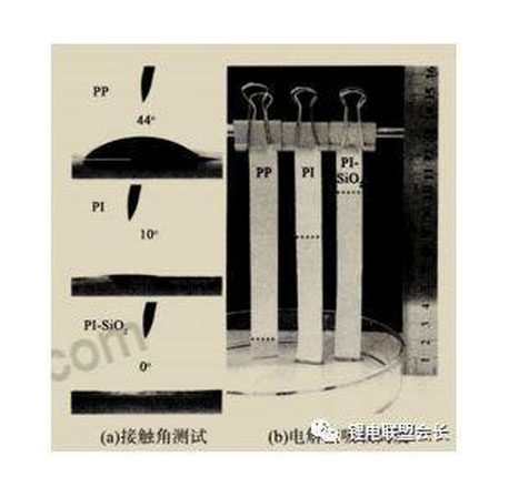 隔膜的潤濕性和潤濕速度對于鋰離子電池的運(yùn)行具有重要的意義。為高效傳遞鋰離子,位于正、負(fù)極材料之間的隔膜須和電解液充分接觸,并且具備持久的電解液保持能力,反之則會(huì)使電池內(nèi)阻增大,降低其使用性能。