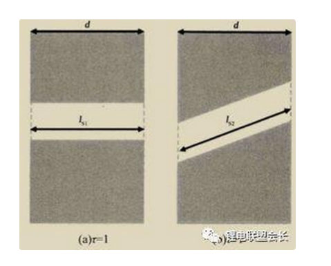 式(4)中,ls是粒子透過隔膜的路程,d為隔膜的厚度。由于離子實(shí)際透過隔膜的路程難 以測量,通常利用式(5)近似計(jì)算得到隔膜的孔道曲折度。