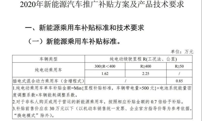 《通知》規(guī)定,新能源乘用車補(bǔ)貼前售價(jià)須在30萬(wàn)元以下(含30萬(wàn)元),才有資格享受補(bǔ)貼政策。2020年4月23日至2020年7月22日的過(guò)渡期期間,符合2019年技術(shù)指標(biāo)要求但不符合2020年技術(shù)指標(biāo)要求的銷售上牌車輛,按照《關(guān)于進(jìn)一步完善新能源汽車推廣應(yīng)用財(cái)政補(bǔ)貼政策的通知》(財(cái)建〔2019〕138號(hào))對(duì)應(yīng)標(biāo)準(zhǔn)的0.5倍補(bǔ)貼,符合2020年技術(shù)指標(biāo)要求的銷售上牌車輛按2020年標(biāo)準(zhǔn)補(bǔ)貼。補(bǔ)貼車輛限價(jià)規(guī)定過(guò)渡期后開始執(zhí)行。