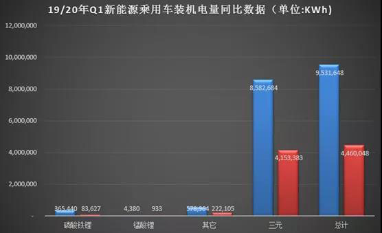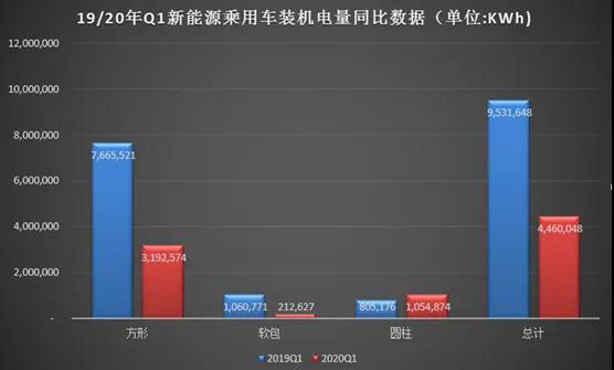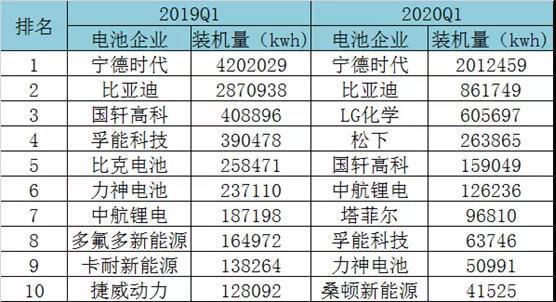 具體來看,與2019年同期相比,2020年Q1乘用車動力電池市場存在以下變化: