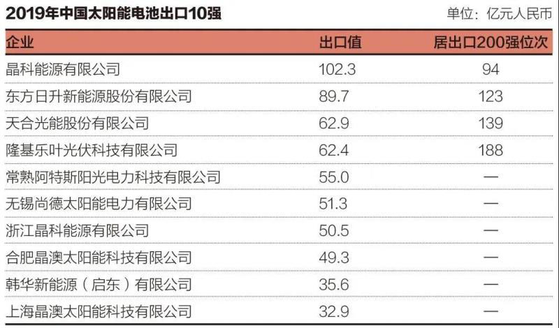 2、2019年中國(guó)光伏組件出口額排名