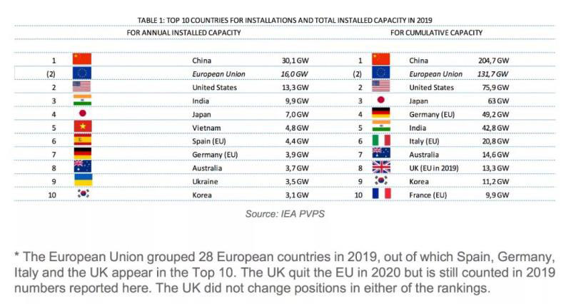 中國(guó)以30.1GW的規(guī)模占據(jù)世界第一。