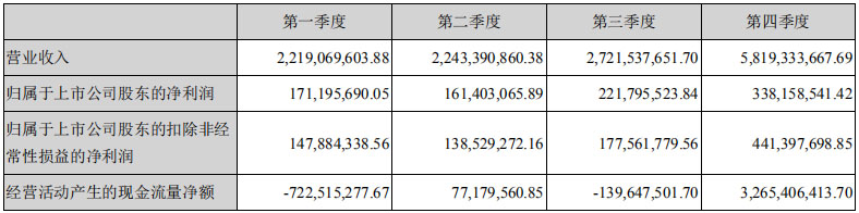 根據(jù)財報,2019年陽光電源各個板塊業(yè)務(wù)均取得正向增長,尤其海外業(yè)務(wù)實現(xiàn)營收32.7億元,同比增長超過1倍。海外業(yè)務(wù)回款條件更好,帶動公司銷售回款能力大幅度提升,經(jīng)營性現(xiàn)金流暴增超過12倍,至24.8億元,創(chuàng)歷史新高。