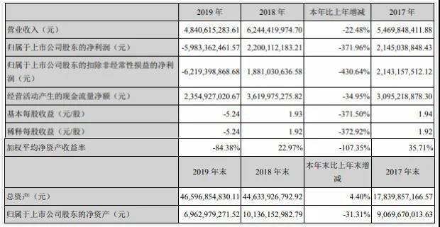 4月28日,天齊鋰業(yè)發(fā)布2019年年度報告,報告期內,公司實現(xiàn)營業(yè)收入48.41億元,同比下降22.48%;歸屬于上市公司股東的凈利潤為虧損59.83億元,而上年同期為盈利22.00億元;歸屬于上市公司股東的扣除非經常性損益的凈利潤為虧損62.19億元,而上年同期為虧損18.81億元;經營活動現(xiàn)金凈流入23.55億元,同比下降34.95%;基本每股虧損5.24元。