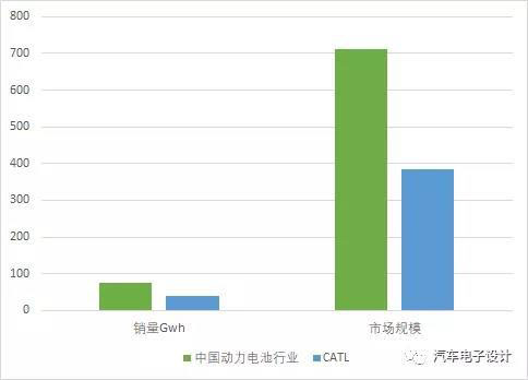 這個(gè)事情落實(shí)到CATL就更能反應(yīng)問題,如下圖所示,如果都按照CATL的1 元/wh去估算,目前國內(nèi)的動(dòng)力電池的市場規(guī)模為700多億。