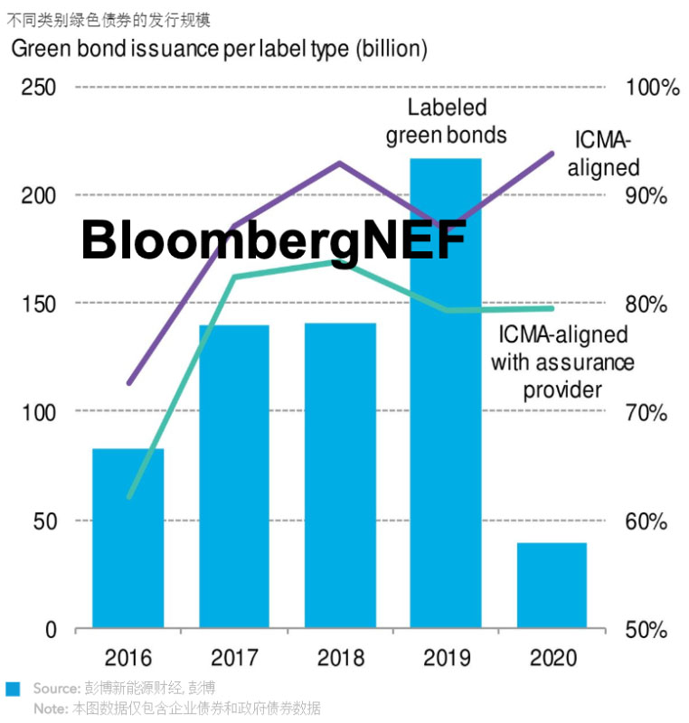 2019年綠色債券總發(fā)行量中,遵循ICMA《綠色債券原則》的債券占比
