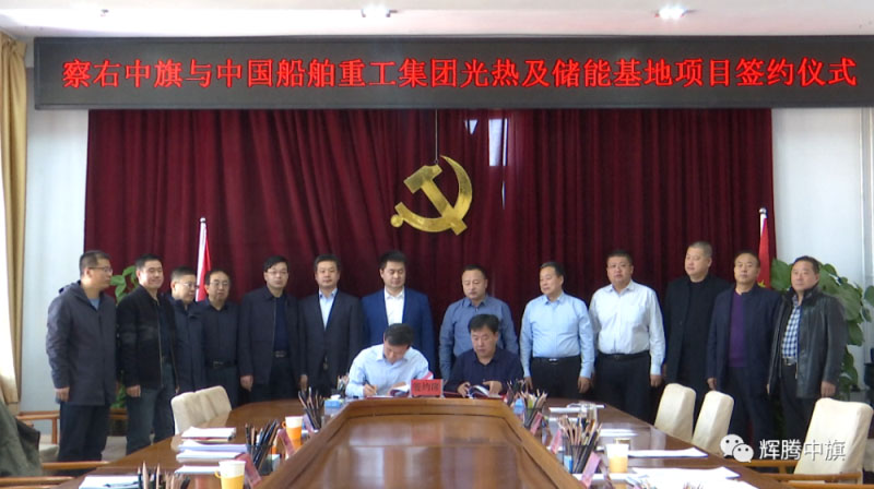 中國儲能網訊:3月27日,察右中旗人民政府與中國船舶重工集團新能源有限責任公司簽訂投資合作協議。中國船舶重工集團新能源有限責任公司副總裁賈永柱、旗委書記劉超、旗委副書記、政府旗長高森、旗委常委、旗委辦主任李賓、政府副旗長張海軍參加簽約儀式。