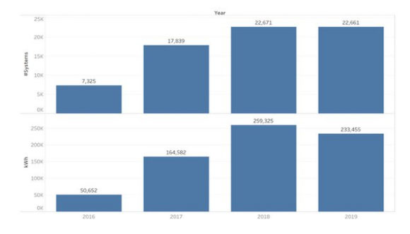 自2015年以來,Sun Wiz公司一直在跟蹤澳大利亞儲(chǔ)能市場的電池安裝量,Sun Wiz董事總經(jīng)理兼報(bào)告作者Warwick Johnston表示:“雖然相對(duì)來說,住宅側(cè)的電池安裝量有所下降,但非住宅側(cè)的電池容量卻有大幅增加?!?