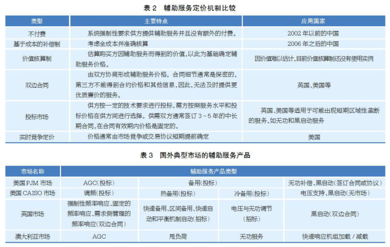 國(guó)外典型輔助服務(wù)市場(chǎng)