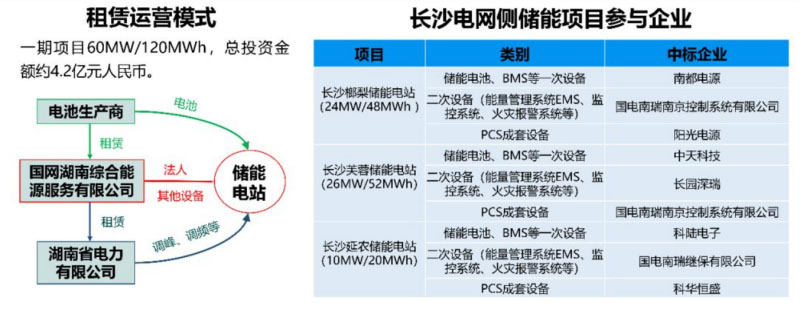 在這種租賃運營模式中,被租賃的只有電池廠家的電池,其余諸如pcs等其他服務(wù)均由國網(wǎng)湖南綜合能源服務(wù)有限公司買單,再轉(zhuǎn)租給國網(wǎng)湖南電力公司用于儲能電站。