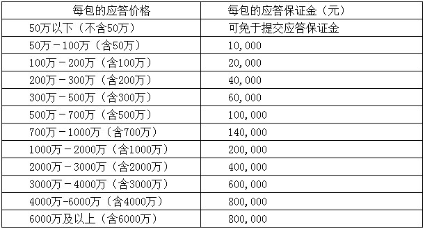 供應(yīng)商按下表規(guī)定的數(shù)量提交應(yīng)答保證金: