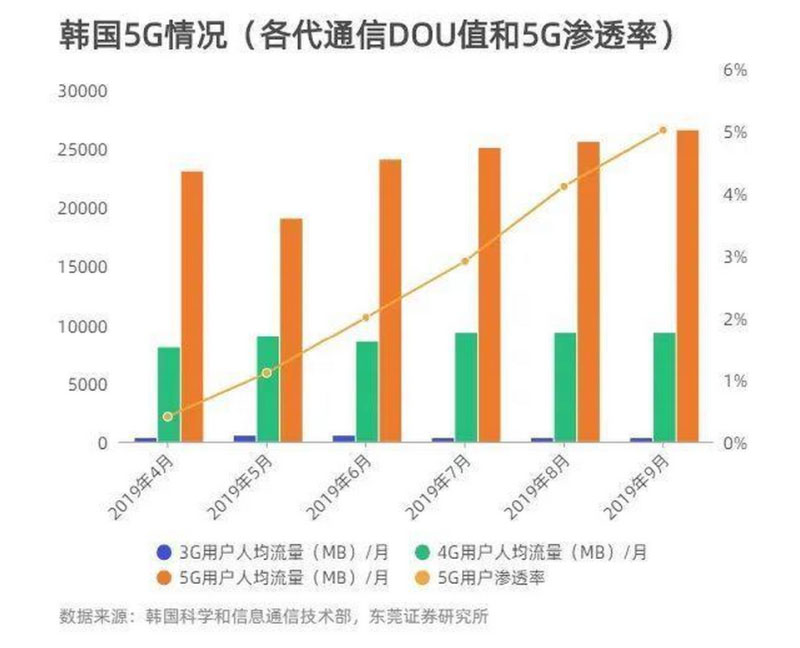 “自2018年12月份發(fā)放牌照,2019年4月份提供服務(wù)、開始向用戶銷售,目前韓國5G用戶超過300萬,用戶增長超預(yù)期,從每個用戶使用的數(shù)據(jù)業(yè)務(wù)量來看基本上能夠達(dá)到4G的2到3倍?!蓖踔厩谡f。