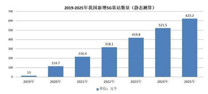 截至2019年前三季度,我國4G基站總數(shù)達(dá)519萬個,按照閻貴成預(yù)計的1.2倍計算,5G基站要建設(shè)622.8萬個。這與工信部原部長李毅中此前公開提到的用大概7年時間建設(shè)600萬個5G基站的說法相差無幾。