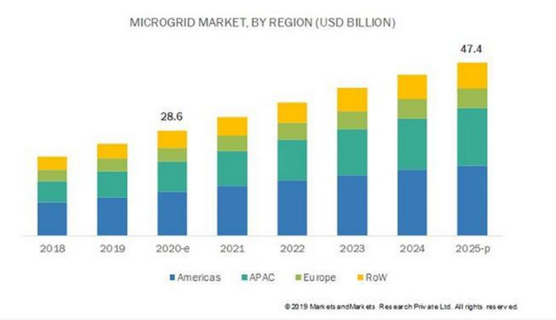 國(guó)際市場(chǎng)研究機(jī)構(gòu)Markets and Markets日前發(fā)布的報(bào)告顯示,2020年全球微電網(wǎng)市場(chǎng)規(guī)模將達(dá)到286億美元,到2025年這一數(shù)據(jù)將增至474億美元,期間年復(fù)合增長(zhǎng)率約為10.6%。