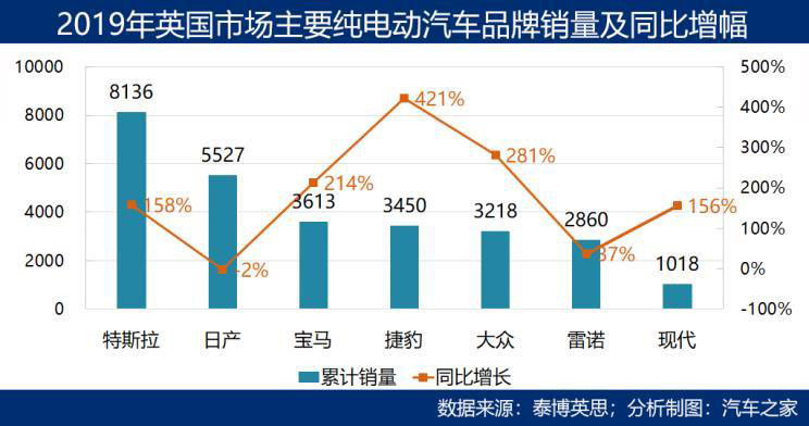 英國(guó)純電動(dòng)市場(chǎng)的表現(xiàn)今年一再被媒體提及,7月以來(lái)銷(xiāo)量連續(xù)四個(gè)月實(shí)現(xiàn)翻番,35425輛的累計(jì)銷(xiāo)量較去年同期增長(zhǎng)了138%,是全球規(guī)模領(lǐng)先區(qū)域市場(chǎng)中增幅最大的,純電動(dòng)汽車(chē)在英國(guó)汽車(chē)總銷(xiāo)量中的占比已經(jīng)接近10%。