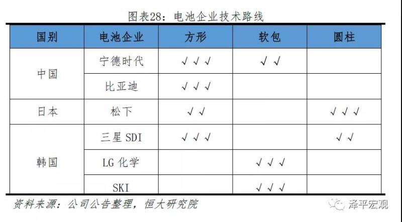 4.3 技術(shù)路線:CATL方形、LG Chem軟包是主流,松下圓柱相對(duì)小眾