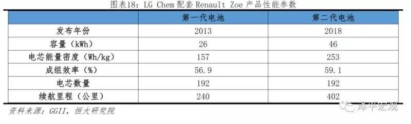 2018年韓國LG Chem動(dòng)力電池出貨量約8.5GWh,全球市場份額8%,累計(jì)出售約2億塊電池、搭載新能源汽車超21萬臺(tái),合作車企包括現(xiàn)代、起亞、沃爾沃等。LG Chem主打高鎳三元軟包電池,以NCM622為主,其次為NCM811,電芯能量密度約在200-250Wh/kg左右,根據(jù)規(guī)劃,預(yù)計(jì)2020年達(dá)到續(xù)航里程500公里、快充時(shí)間30分鐘、能量密度700Wh/L。