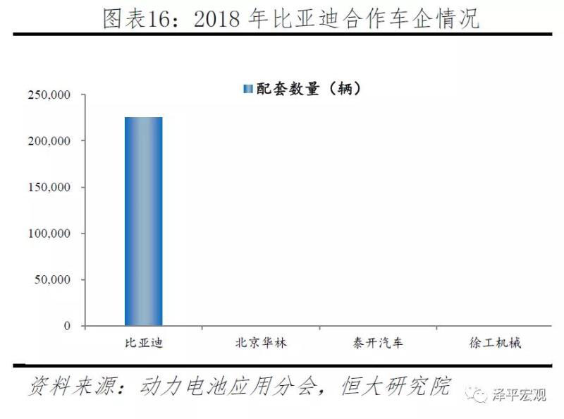 產(chǎn)業(yè)鏈一體化與電池技術(shù)的積累雖然使得比亞迪新能源汽車具備一定先發(fā)優(yōu)勢(shì),但封閉的供應(yīng)體系卻制約了動(dòng)力電池部門的快速發(fā)展。比亞迪動(dòng)力電池最大的客戶是同集團(tuán)的比亞迪新能源汽車,2018年配套新能源汽車共22.5萬輛,其中比亞迪自供占比高達(dá)99.9%,僅約80余輛供應(yīng)北京華林、泰開汽車和徐工機(jī)械。為改善目前封閉的生態(tài)體系,比亞迪加快產(chǎn)業(yè)全鏈拓展向外開放,上游方面,除資產(chǎn)正極、電解液、隔膜等原材料,比亞迪主要通過合資形式進(jìn)行鋰資源、前驅(qū)體等資源開發(fā)。中游方面,加快自身電池業(yè)務(wù)的獨(dú)立計(jì)劃,預(yù)計(jì)2023年單獨(dú)上市。下游方面,比亞迪積極尋求其他整車企業(yè)合作。