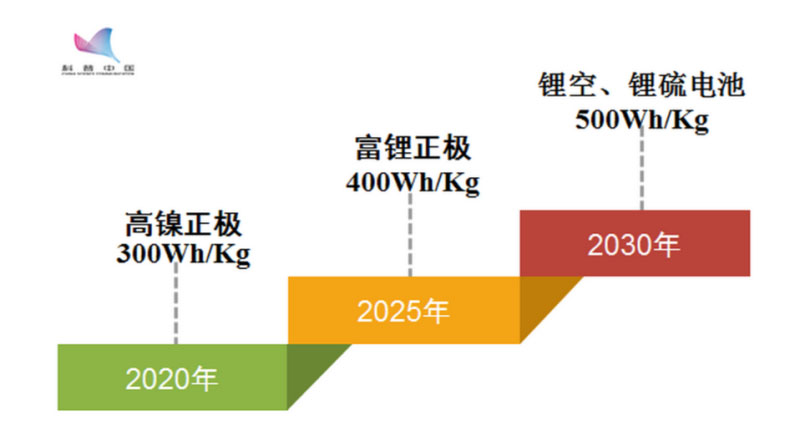 國(guó)務(wù)院頒發(fā)的《中國(guó)制造2025》提出2020 年動(dòng)力電池能量密度要達(dá)到 300 Wh/Kg,2025 年達(dá)到 400 Wh/Kg,2030 年能量密度達(dá)到 500 Wh/kg。目前量產(chǎn)動(dòng)力電池單體能量密度在 230±20 Wh/Kg,根據(jù)《中國(guó)制造2025》的要求,結(jié)合現(xiàn)在的技術(shù)路線(xiàn),我國(guó)的科技工作者提出了使用高鎳正極+準(zhǔn)固態(tài)電解質(zhì)+硅碳負(fù)極實(shí)現(xiàn) 300 Wh/Kg的目標(biāo);2025 年使用富鋰正極+全固態(tài)電解質(zhì)+硅碳/鋰金屬負(fù)極電池實(shí)現(xiàn) 400 Wh/Kg的目標(biāo),2030年使用鋰空氣電池、鋰硫電池達(dá)到500 Wh/Kg的目標(biāo)。