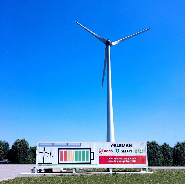 比利時(shí)一個(gè)商業(yè)基地的兩臺(tái)風(fēng)力渦輪機(jī)配套部署了一個(gè)電池儲(chǔ)能系統(tǒng),并被能源運(yùn)營(yíng)商N(yùn)ext Kraftwerke公司添加到虛擬發(fā)電廠中,可以提供頻率控制儲(chǔ)備(FCR)等服務(wù),其響應(yīng)速度比傳統(tǒng)化石燃料發(fā)電設(shè)施更快。