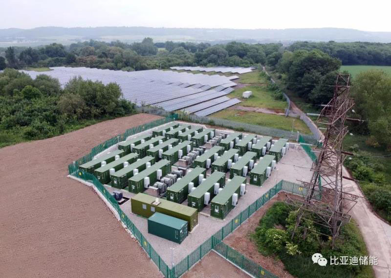 2018年,歐洲投運最大單體儲能項目成功接受英國國網(wǎng)調(diào)度,該項目規(guī)模為49MW/49MWh,由比亞迪提供,項目地點分別位于Claredown和Aylesford,在電力系統(tǒng)運行過程中,實現(xiàn)對電網(wǎng)頻率的調(diào)節(jié)。