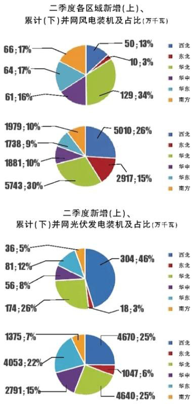 華中、華東和南方地區(qū)消納情況整體較好。二季度,中東部和南方地區(qū)棄風(fēng)1.4億千瓦時(shí),棄光2.2億千瓦時(shí)。湖南二季度進(jìn)入汛期后出現(xiàn)一定棄電,西藏受電網(wǎng)送出限制造成棄光率較高但總量不大,貴州和云南受局部網(wǎng)架影響出現(xiàn)了微量的棄風(fēng)棄光,其余地區(qū)無新能源消納問題。