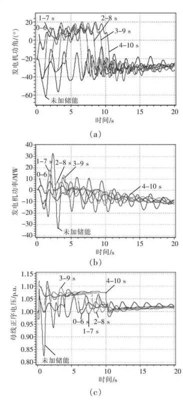 圖3 靈紹直流閉鎖后不同儲能支持時機(jī)的仿真曲線