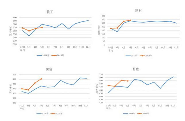 圖3 2018、2019年重點行業(yè)分月用電量情況