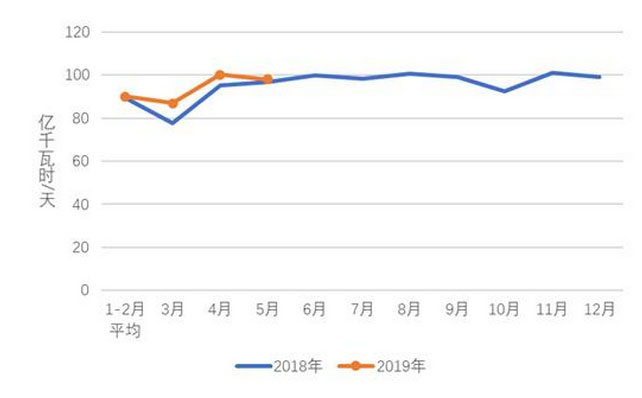 圖2 2018、2019年分月制造業(yè)日均用電量
