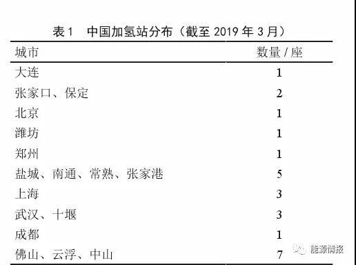 自2017年以來,中國(guó)氫能產(chǎn)業(yè)呈現(xiàn)爆發(fā)式發(fā)展,現(xiàn)階段中國(guó)的應(yīng)用市場(chǎng)主要以燃料電池大巴車與物流車為主,為了滿足車輛應(yīng)用示范,各地已開始大規(guī)模規(guī)劃并建設(shè)保障性加氫站,截至2019年3月,中國(guó)已投產(chǎn)加氫站數(shù)量達(dá)到25座(包括兩座內(nèi)部整改站),較2017年增加14座(見圖1)。在已建成加氫站中,固定式加氫站11座,撬裝式加氫站14座,此外,有17座加氫站在建,加氫站分布主要集中在廣東、江蘇、上海、湖北、河北等地(見表1)。