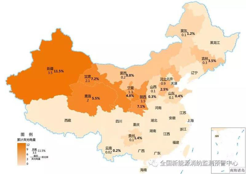 一季度各地區(qū)累計(jì)棄光電量及棄光率