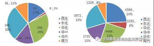 一季度各區(qū)域新增(左)、累計(jì)(右)并網(wǎng)光伏發(fā)電裝機(jī)(萬(wàn)千瓦)