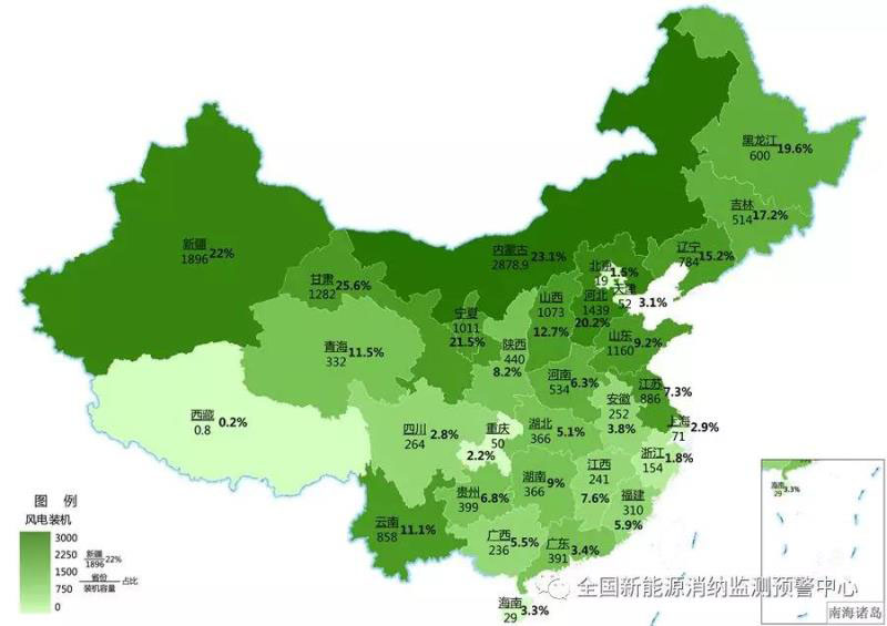 截至3月底各地區(qū)累計(jì)風(fēng)電裝機(jī)(萬(wàn)千瓦)及占本地區(qū)總裝機(jī)比重