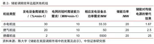 頻率的變化會對發(fā)電及用電設(shè)備的安全高效運行及壽命產(chǎn)生影響,因此頻率調(diào)節(jié)至關(guān)重要。在傳統(tǒng)能源結(jié)構(gòu)中,電網(wǎng)短時間內(nèi)的能量不平衡是由傳統(tǒng)機組(在我國主要是火電和水電)通過響應(yīng)AGC信號來進行調(diào)節(jié)的。而隨著新能源的并網(wǎng),風(fēng)光的波動性和隨機性使得電網(wǎng)短時間內(nèi)的能量不平衡加劇,傳統(tǒng)能源(特別是火電)由于調(diào)頻速度慢,在響應(yīng)電網(wǎng)調(diào)度指令時具有滯后性,有時會出現(xiàn)反向調(diào)節(jié)之類的錯誤動作,因此不能滿足新增的需求。相較而言,儲能(特別是電化學(xué)儲能)調(diào)頻速度快,電池可以靈活地在充放電狀態(tài)之間轉(zhuǎn)換,成為非常好的調(diào)頻資源。