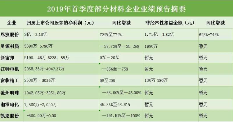 原標(biāo)題:爆賺巨虧皆是同行 材料企業(yè)2019年首季業(yè)績預(yù)告