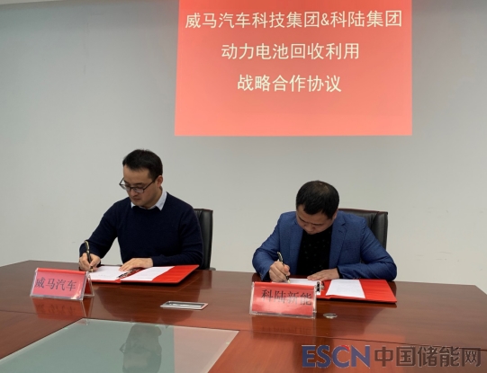中國(guó)儲(chǔ)能網(wǎng)訊:近日,深圳市科陸電子科技股份有限公司(以下簡(jiǎn)稱(chēng)“科陸”)與威馬汽車(chē)科技集團(tuán)有限公司(以下簡(jiǎn)稱(chēng)“威馬汽車(chē)”)簽訂戰(zhàn)略合作協(xié)議,雙方約定在全國(guó)范圍內(nèi)推動(dòng)梯次電池儲(chǔ)能系統(tǒng)應(yīng)用,并將于后期開(kāi)展儲(chǔ)能項(xiàng)目運(yùn)營(yíng)。