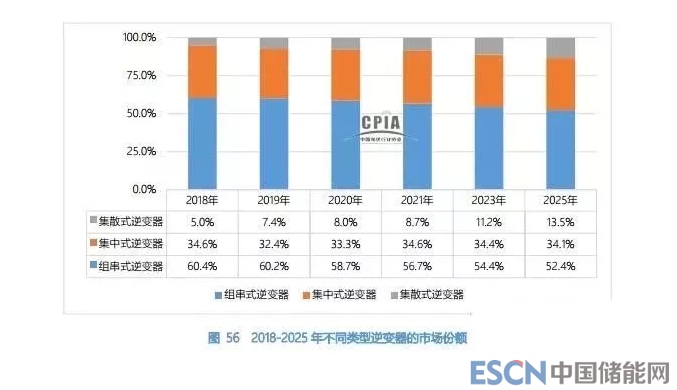 2018-2025 年不同類型逆變器的市場(chǎng)份額如下圖所示。