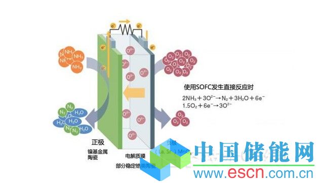 以NH3為燃料的SOFC方面,正極候選材料是鎳(Ni)基金屬陶瓷,電解質(zhì)膜候選材料是部分穩(wěn)定鋯(Zr)類陶瓷,負(fù)極候選材料是添加了鑭鍶類材料的錳氧化物((La, Sr)MnO3)。據(jù)推算,采用上述材料制成的SOFC的發(fā)電效率將超過現(xiàn)有SOFC的45%。如果要進(jìn)行間接反應(yīng)的話,還要開發(fā)分解NH3時使用的催化劑材料。目前正在考慮的候選材料有鐵(Fe)、鈷(Co)、鎳及釕(Ru)等。