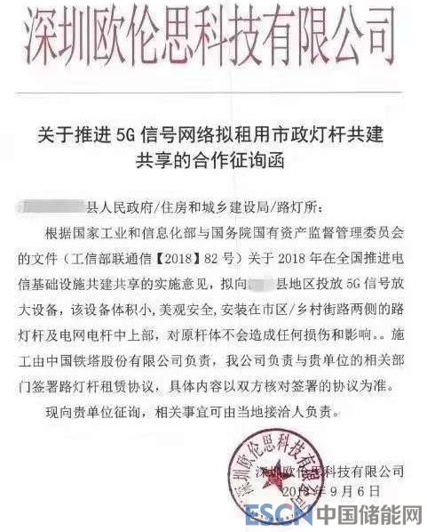 中國儲能網訊:中國鐵塔通過官方微信公眾號稱,有一些公司以5G網絡信號建設、5G小基站建設為名義,冒中國鐵塔之名試圖尋求各地政府部門的合作,進行所謂的市政燈桿共建共享等。