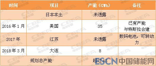 在看到中國新能源汽車火爆的市場后,松下也開始進(jìn)軍中國市場。據(jù)不完全統(tǒng)計,2017年,松下在江蘇建設(shè)工廠,主要生產(chǎn)18650型三元鋰離子電池;2018年3月,松下在此前投資約500億日元(約合29.6億元人民幣)的大連工廠擴(kuò)建,產(chǎn)能可滿足20萬輛電動汽車(以一輛車需要40WMh計算,20萬輛電動汽車則約需要8GWh)的搭載需求,將主要向北美和中國市場供應(yīng)方形動力電池。