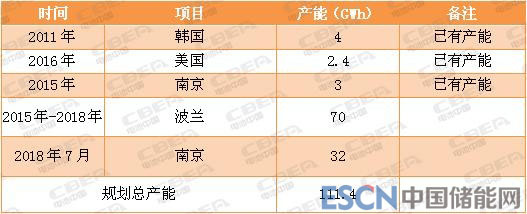 LG化學(xué)現(xiàn)有及規(guī)劃(含在建)產(chǎn)能情況統(tǒng)計