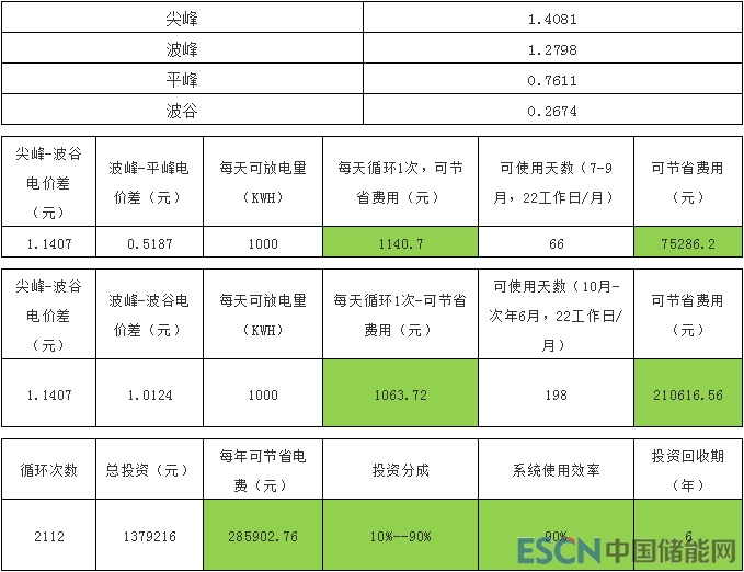 從上面這個(gè)表可以看出來,儲能項(xiàng)目總投資137.9萬元,每年節(jié)省電費(fèi)28.6萬元,按照約定90%歸我方,則收益為25.74萬元,那么,年投資收益率為18.66%,靜態(tài)投資回收期為5.35年。