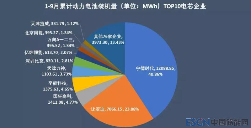 前9個月累計(jì)有22家企業(yè)年度裝機(jī)量超過100MWh,合計(jì)總裝機(jī)27.81GWh,占同期裝機(jī)總量的92.9%,僅寧德時代與比亞迪兩家就合計(jì)拿下64.7%的市場份額,寡頭形象已現(xiàn),其他企業(yè)的競爭壓力劇增。
