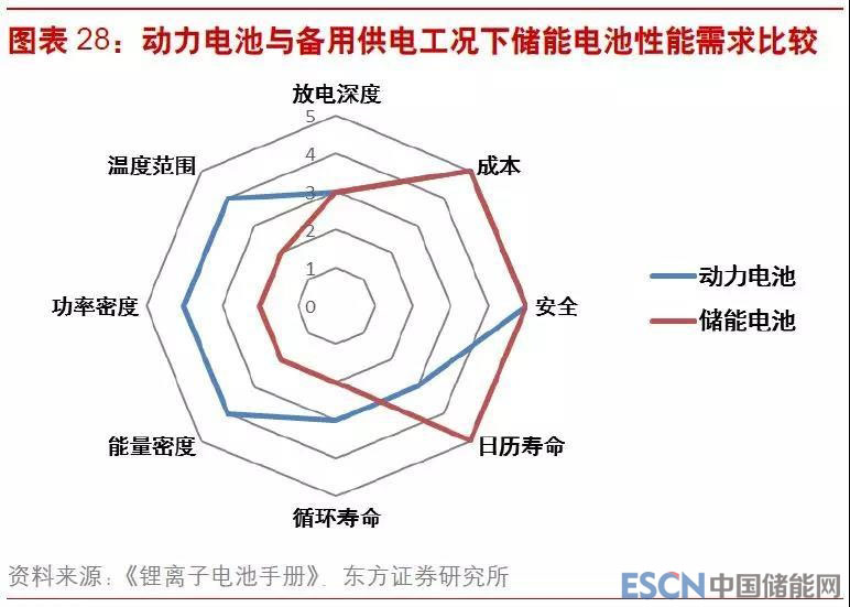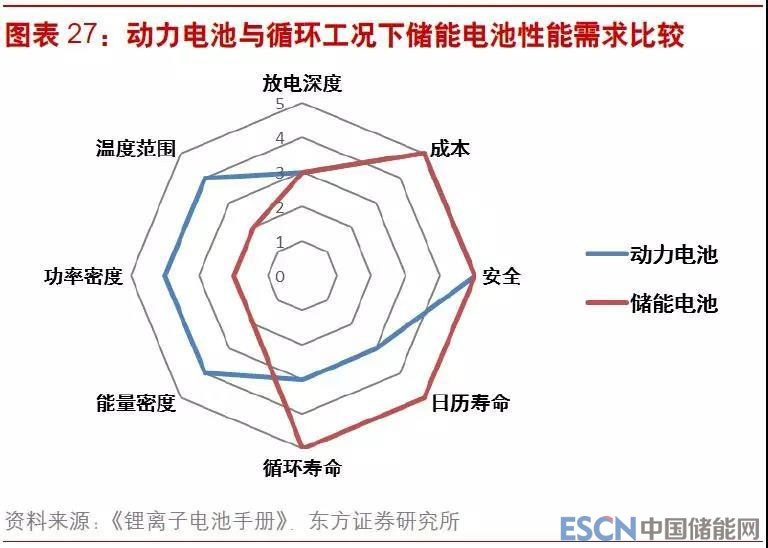 汽車(chē)動(dòng)力電池對(duì)于電池的功率和能量要求較高,而儲(chǔ)能電池則更偏重于安全和壽命等方面,而且在不同工況下對(duì)于產(chǎn)品性能也有不同的要求??傮w而言,電池的安全、循環(huán)壽命和日歷壽命、價(jià)格和存儲(chǔ)效率等因素是儲(chǔ)能系統(tǒng)優(yōu)先考量的性能。